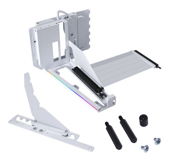 Bộ giá đỡ GPU dọc cung cấp cáp riser PCIe 5.0 dài 155mm và tốc độ truyền tải lên đến 32 Gbps (mỗi làn). Đầu nối có thiết kế góc 180° đến 90° giúp việc đi dây cáp dễ dàng hơn, và đế được trang bị đèn LED RGB có thể tùy chỉnh thông qua phần mềm bo mạch chủ RGB phổ biến. Bộ giá đỡ GPU có sẵn hai màu trắng và đen, cho phép người dùng lựa chọn màu sắc phù hợp nhất với dàn máy của mình.