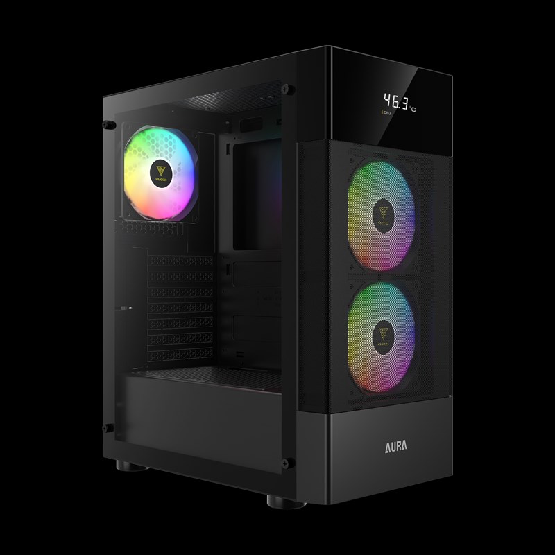 AURA GC5 ARGB là một tháp giữa tiết kiệm với nhiều tính năng và khung máy được bố trí hiệu quả. Mặt trước được đục lỗ hoàn toàn với màn hình giám sát thời gian thực được tích hợp liền mạch ở trên cùng. Vỏ máy được trang bị 3 quạt ARGB tích hợp và tấm ốp bên bằng kính cường lực toàn cảnh để có thể quan sát toàn bộ PC của bạn một cách hấp dẫn.