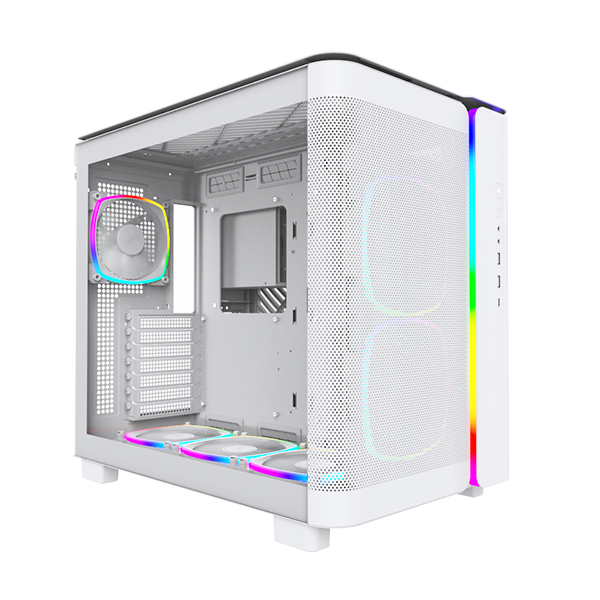 KING 95 Pro có 2 quạt bên RX140 RGB ARGB, 3 quạt đáy RX120 RGB ARGB, 1 quạt phía sau AX120 RGB ARGB và bao gồm một Hub quạt ARGB 1 đến 10 ARGB để điều khiển chính xác hệ thống làm mát của bạn. Tổng cộng có 6 quạt và một bộ điều khiển
