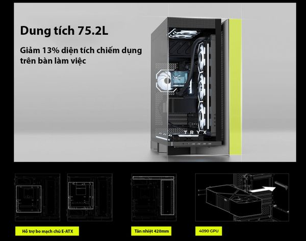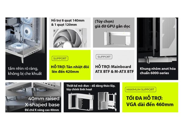 MB hỗ trợ: E-ATX (chiều rộng < 280mm), ATX, Micro-ATX, Mini-ITX