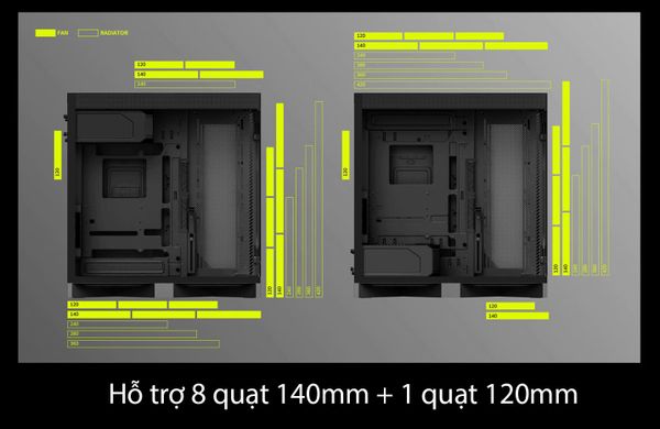 - Trên: 2 x 120/140mm(x3 nếu nguồn đặt ở đáy vỏ)