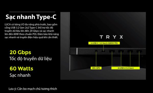Cổng I/O: USB 3.2 Gen1 x4, USB TypeC 3.2 Gen2 x2, HD Audio x1, Nút Fan LED x1