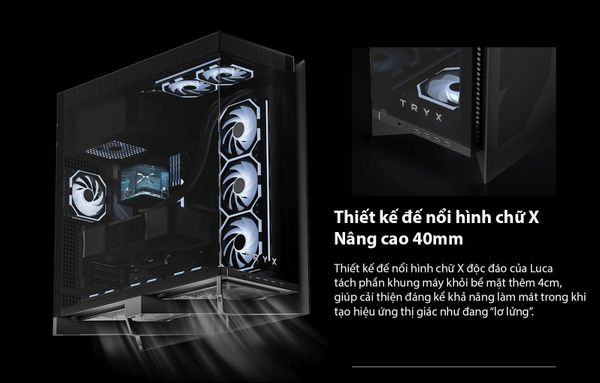 LUCA 170 là dòng vỏ case full tower cao cấp hội tụ sự tinh tế trong thiết kế, linh hoạt trong lắp đặt, cùng khả năng hỗ trợ phần cứng vượt trội cho các hệ thống PC mạnh mẽ nhất hiện nay. Với chất liệu nhôm nguyên khối cao cấp, kính cường lực dày 4mm, không gian rộng rãi và khả năng tản nhiệt tối ưu – LUCA 170 là lựa chọn hoàn hảo cho người dùng đam mê hiệu năng và tính thẩm mỹ đẳng cấp.