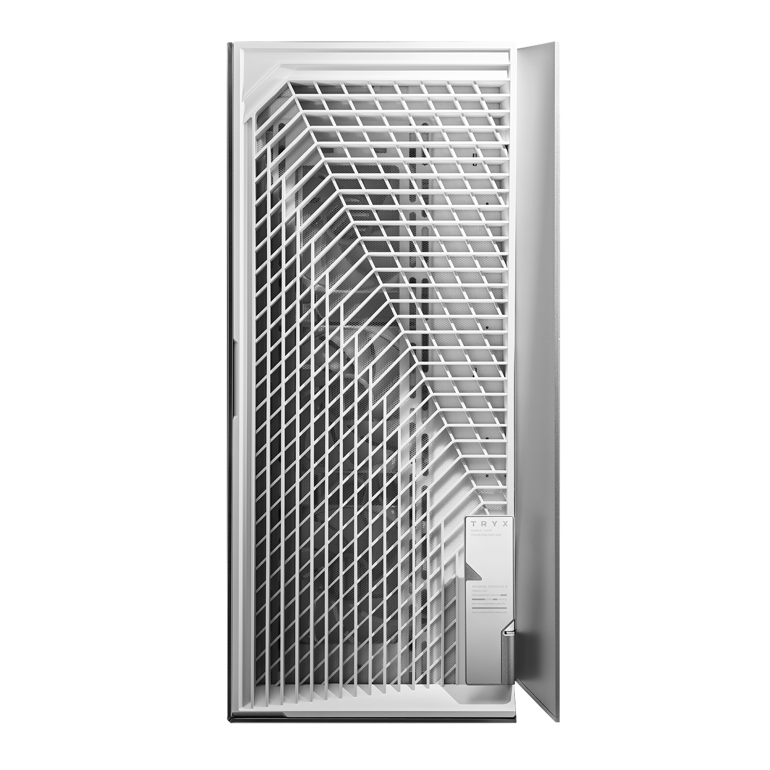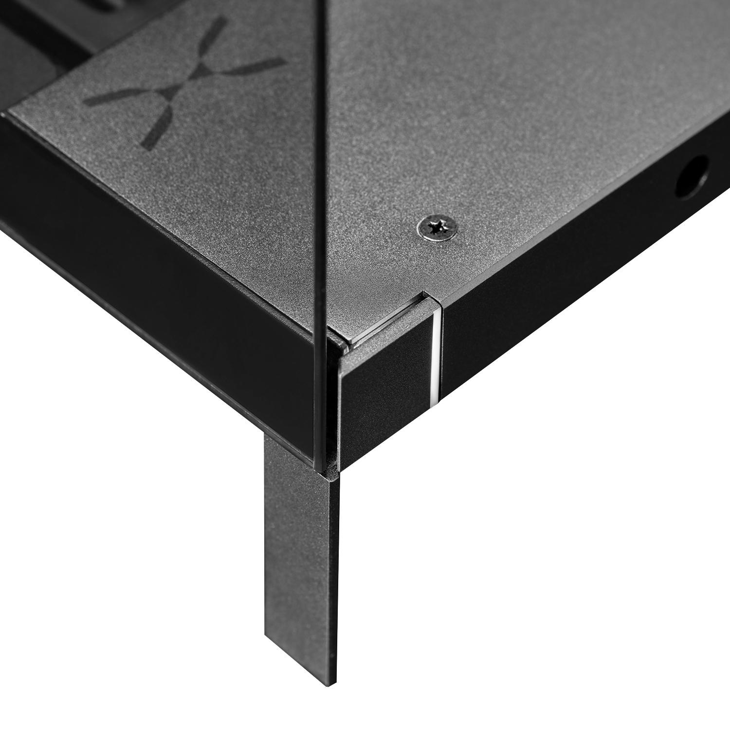 Thiết kế đế hình chữ X nâng khung máy lên 40mm, giúp cải thiện đáng kể khả năng hút gió từ đáy, đồng thời tạo hiệu ứng “floating” hiện đại và khác biệt.