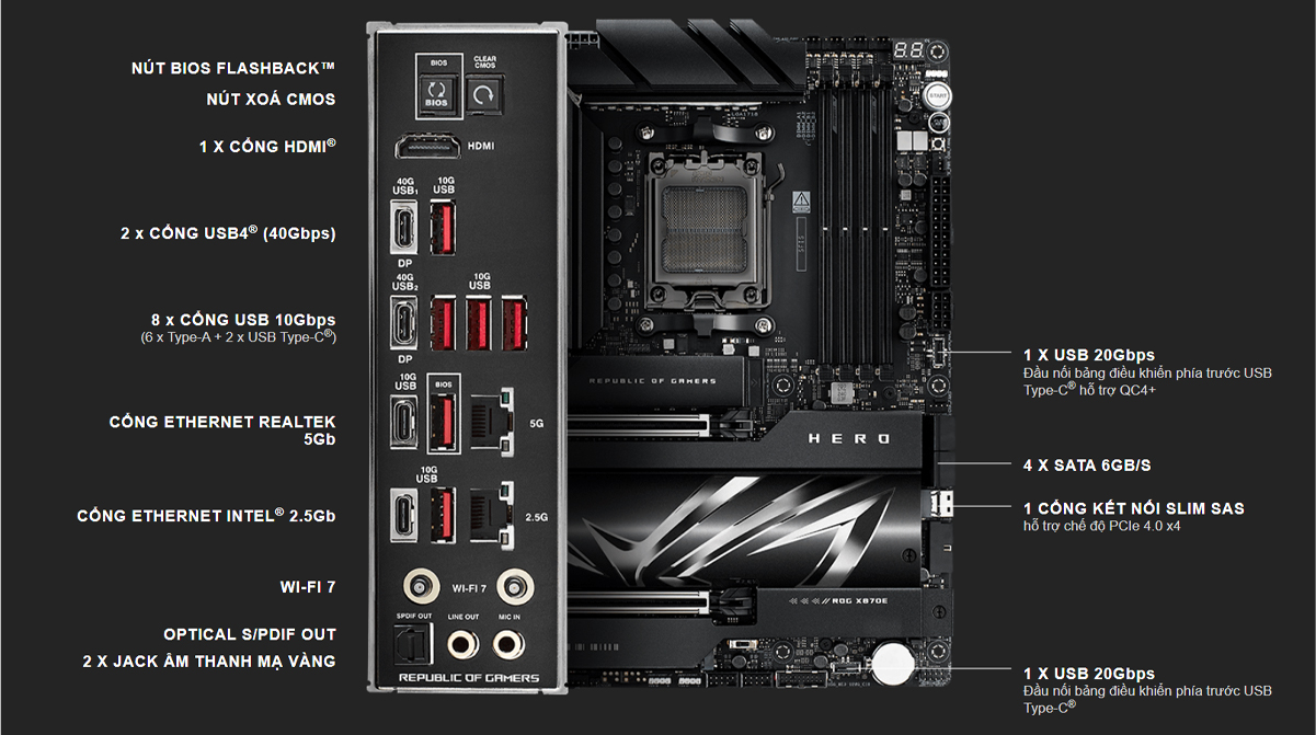 ASUS ROG CROSSHAIR X870E HERO – Mainboard Cao Cấp Cho PC AMD Ryzen