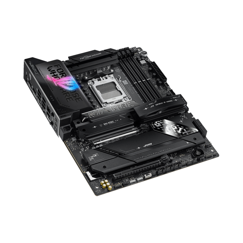 ASUS ROG STRIX X870E-E sử dụng socket AMD AM5, hỗ trợ các dòng CPU Ryzen™ 9000, 8000 và 7000, cho phép tận dụng toàn bộ khả năng xử lý đa nhân mạnh mẽ và hiệu suất đồ họa tích hợp RDNA3.