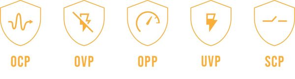 - Bảo vệ: OVP / UVP / OPP / OCP / SCP